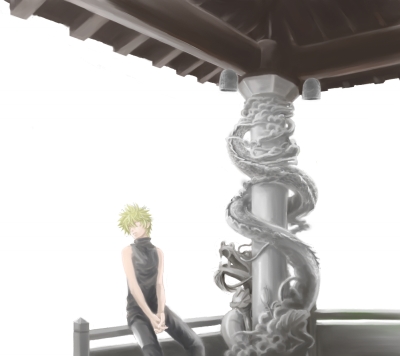 ちなみに坂崎は全部細かいのを描くのがめんどくさいんでぼかせそうなトコロ(逆光になる部分や影の部分)はできるだけぼかしていくようにします (例:柱の下の部分・逆光になってる竜の腹の部分・屋根の部分など)
